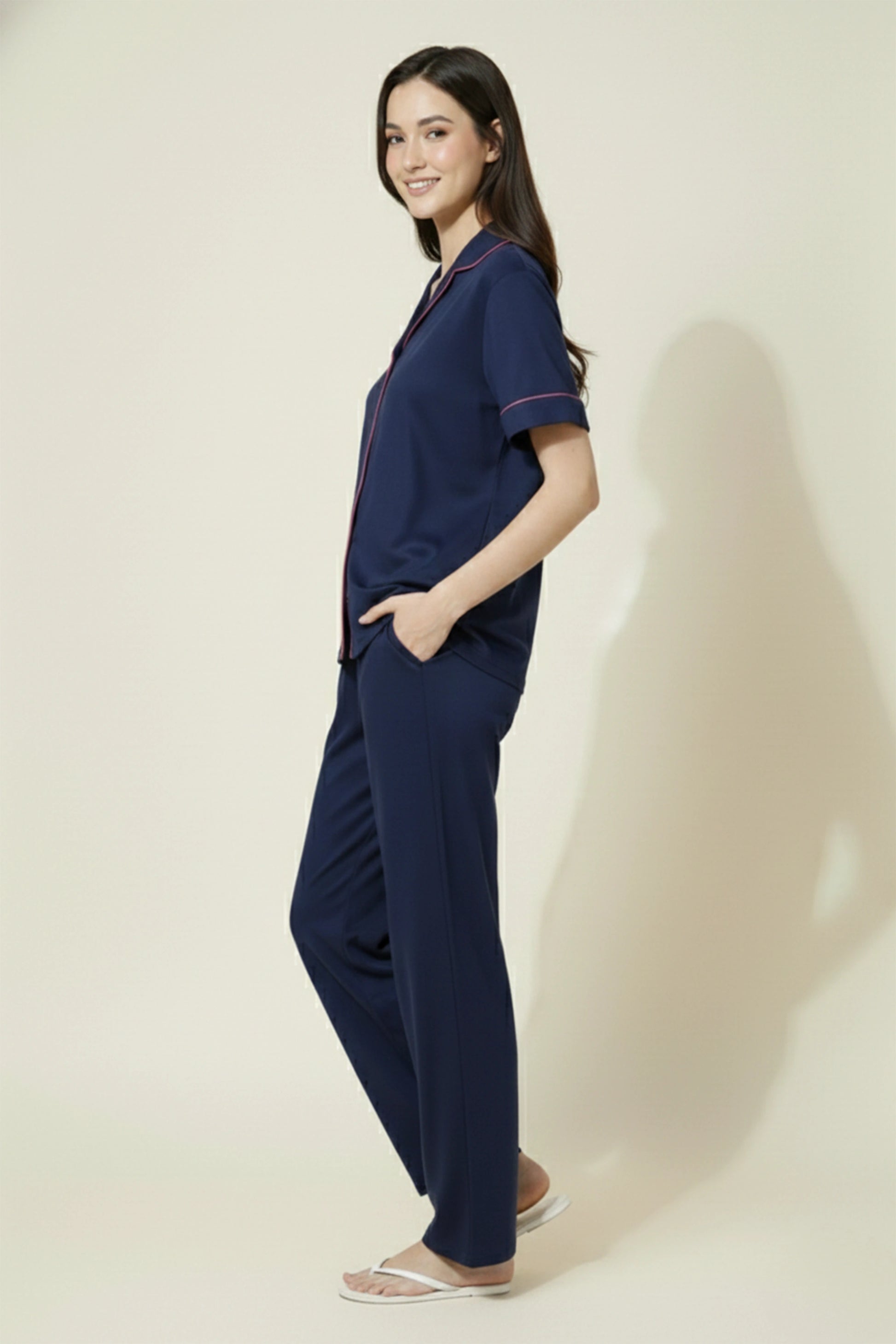 Payment methodsSoft, breathable and effortlessly elegant — this Navy Blue cotton night suit is designed for slow evenings and comfortable mornings. Finished with delicate contrast piping for a refined touch.