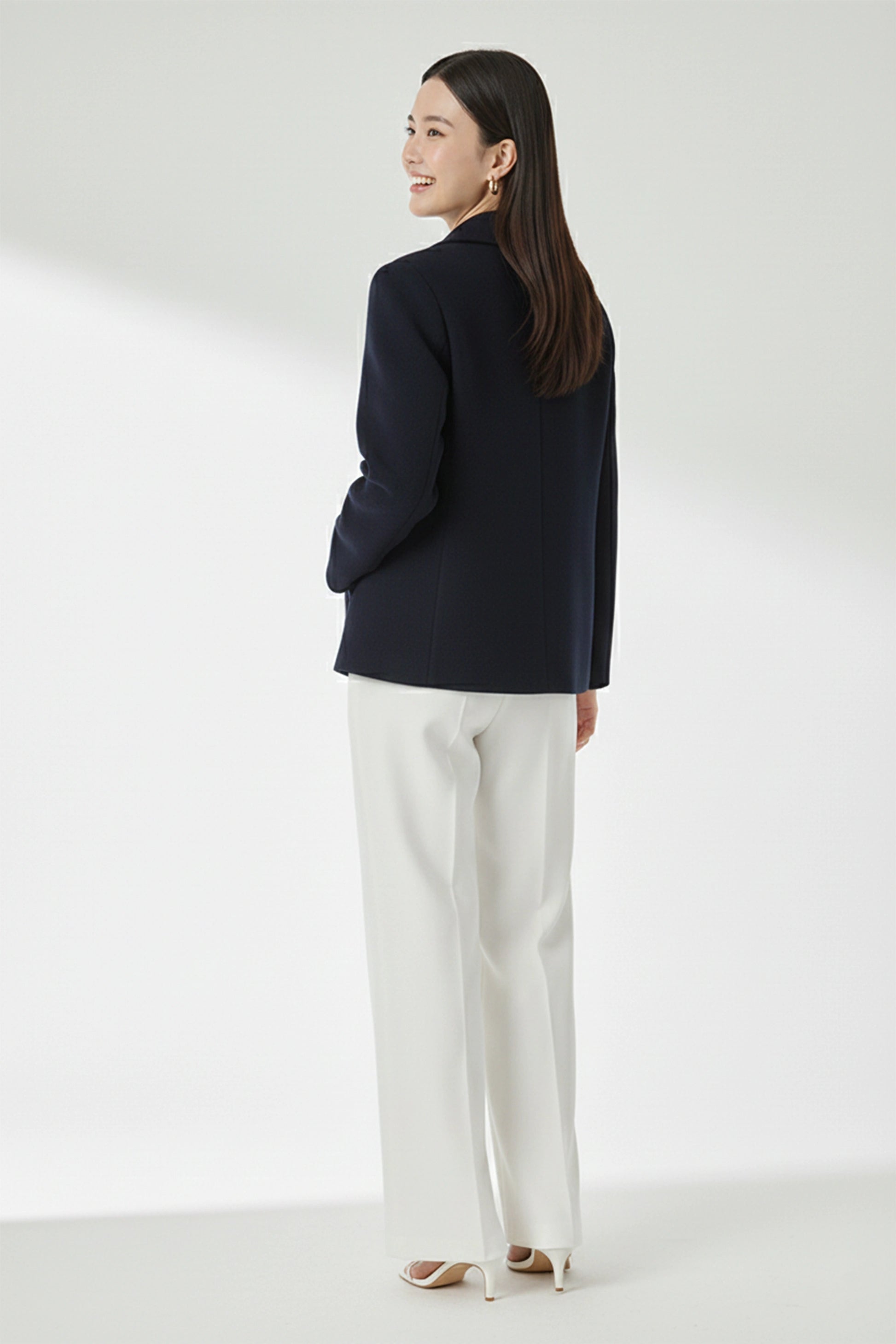 Crafted in premium felt fabric, this Navy Blue Short Coat brings together clean tailoring and effortless sophistication. The smooth, structured felt offers a refined drape while keeping you comfortably warm, making it a perfect layering piece for cooler days. Designed with a sharp collar, classic tortoiseshell buttons, and a straight, minimal silhouette, it delivers a polished look without compromising on comfort. Subtle side pockets and neatly tailored sleeves enhance its versatility, allowing you to pair it seamlessly with trousers, dresses, or skirts. Whether for work, travel, or an elevated everyday look, this jacket adds timeless elegance to any outfit.